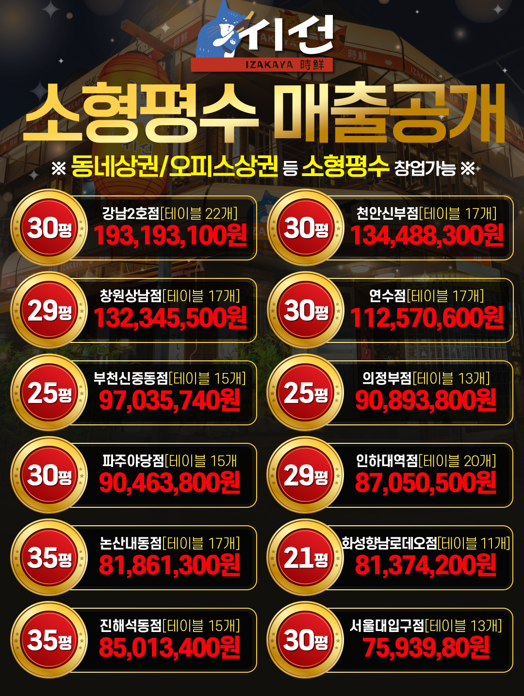 이자카야 시선은 남녀노소 사랑받는 메뉴 구성과 평일/주말 구분없는 매출액으로 수익성을 증명합니다